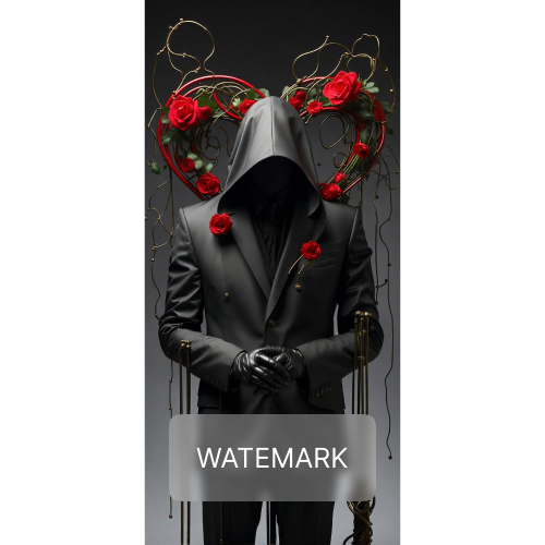 A faceless figure clad in a tailored suit and gloves stands enigmatic.